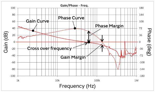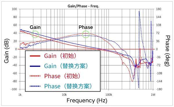 在电源电路等反馈电路中,通过观察反馈电路的增益和相位特性(图7b中的蓝色虚线)来检查稳定性。改变输出电容会改变增益和相位特性。此时,如果相位延迟而增益变大,则电源电路将根据条件振荡。如果更换导致不稳定情况,请调整相位补偿电路常数以确保稳定性。评估指标包括相位裕度、增益裕度和交叉频率(图7c)。