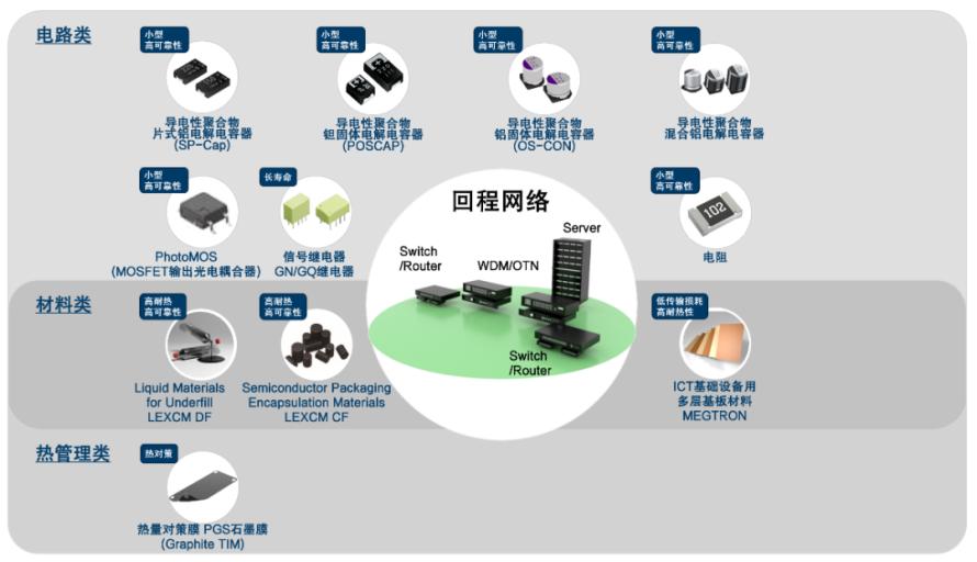 松下机电公司将提供不断进化的信息通信基础设施设备所需的具备小型、高可靠性、低损耗、高耐热特性的零部件及材料等最佳解决方案。