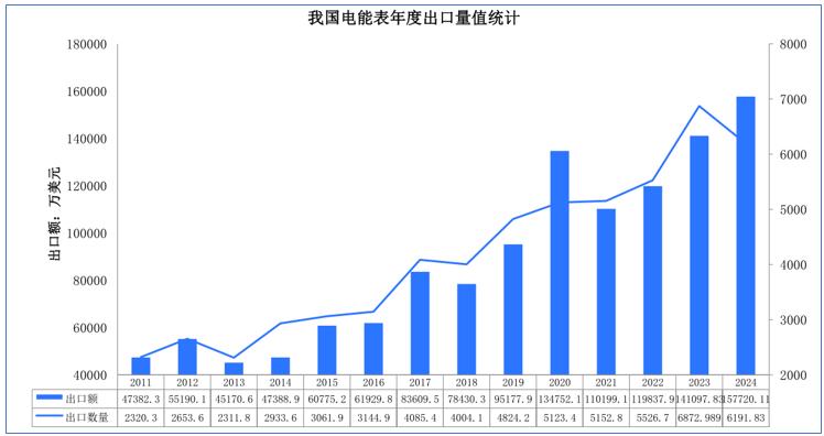 不过,中国电表出口对于各大零部件厂商而言,也是巨大的市场机遇。近年来,中国电表厂商凭借技术优势、价格优势、交付优势以及抱团模式等综合优势,积极推动中国制造的电表走向海外。根据中国海关总署数据,2021 - 2023 年期间,中国电表出口金额的年复合增长率(CAGR)达 13.8%,2024 年 1 - 8 月同比增长 10%,达到 74.0 亿元;同时,中国电表的出口量连续两年突破 6000 万只大关。