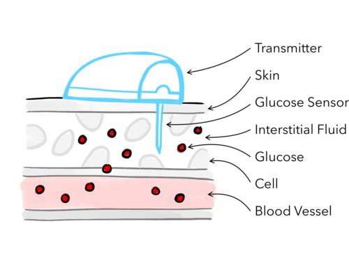 图1:图片来自DiabetesWise.org。该图描述了血管上方的皮肤层,并显示了可靠的血糖信息如何存在于间质液中,而不是血液中。