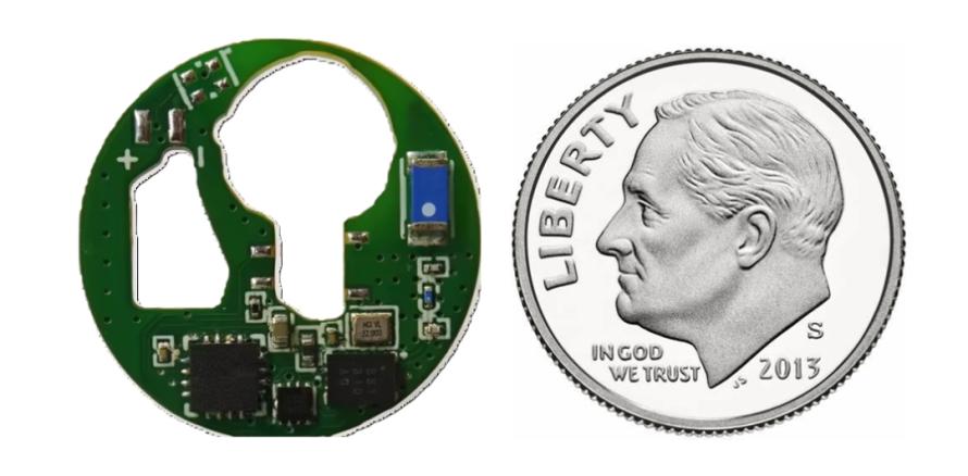 该系统由标准1.5V电池供电,可集成到一个18毫米的紧凑贴片中,大小与一枚一角美元硬币相当。