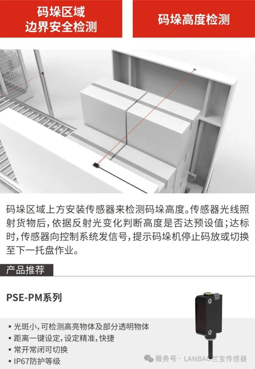 破解上述难题,离不开精准、可靠的传感技术赋能。LANBAO 兰宝智慧物流传感器解决方案,覆盖物流全流程关键节点 —— 从入库分拣、码垛搬运到仓储存储、智能调度等,凭借多场景精准检测与数据反馈,为智慧物流运行提供核心支撑。