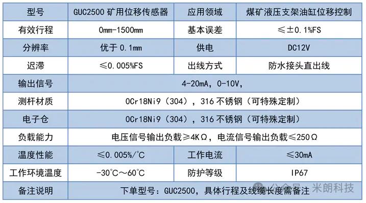 二、GUC2500矿用本安磁致伸缩位移传感器技术参数: