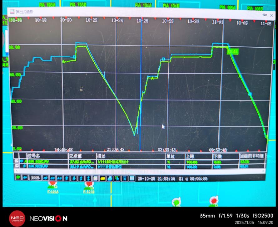 在该新材料公司的碳五储罐群项目上,该液位计覆盖直径5米、高15米的大型容器。在我司安装工程师的精心安装调试后,系统自动识别罐壁厚度(20-50mm),并与手动液位比对,精度验证达99.8%。