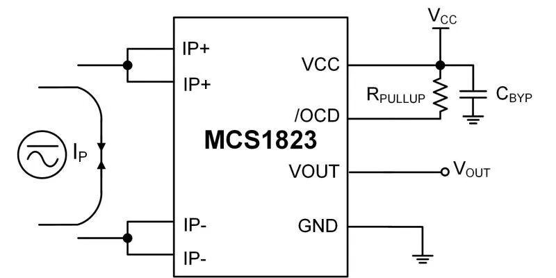 MCS1823 是一款超小尺寸封装、带有过流检测功能的线性霍尔效应电流传感器,支持 3.3V 或 5V 单电源供电,最大额定电流为 50A,0.6mΩ 的低电阻原边导体允许大电流在包含高精度霍尔传感器的 IC 附近流动。同时,MCS1823 具有快速过流检测(OCD,1μs 响应时间)特性,可轻松监测系统的过流事件。超小尺寸的 TQFN - 12(3mmx3mm)封装使其能够轻松应对各种空间受限应用。