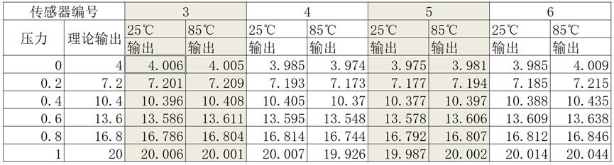 (表2)温补后的压力变送器输出数据