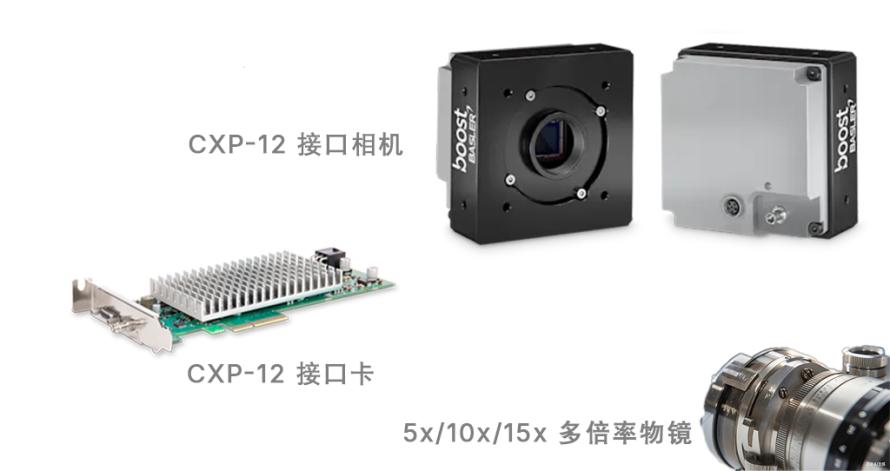 在提升系统效率方面,Basler视觉方案凭借其硬件核心——高带宽CoaXPress-12(CXP-12)接口相机,显著提升了图像采集速度。该相机在高分辨率条件下仍可维持高帧率运行,大幅缩短取图时间,为系统响应速度提供基础保障。针对小视场多次采图的需求,方案进一步引入高效“飞拍”模式,有效减少拍摄间隔,满足高节拍产线的应用要求。